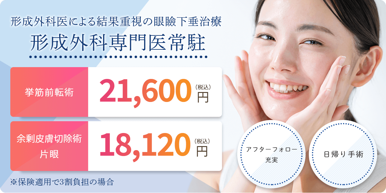 眼瞼下垂の治療は、機能的な問題(視野の狭さ、頭痛、肩こりなど)があり、日常生活に支障をきたしていると判断された場合に、保険診療の適用となることがあります。美容目的の場合は、自費診療となります。